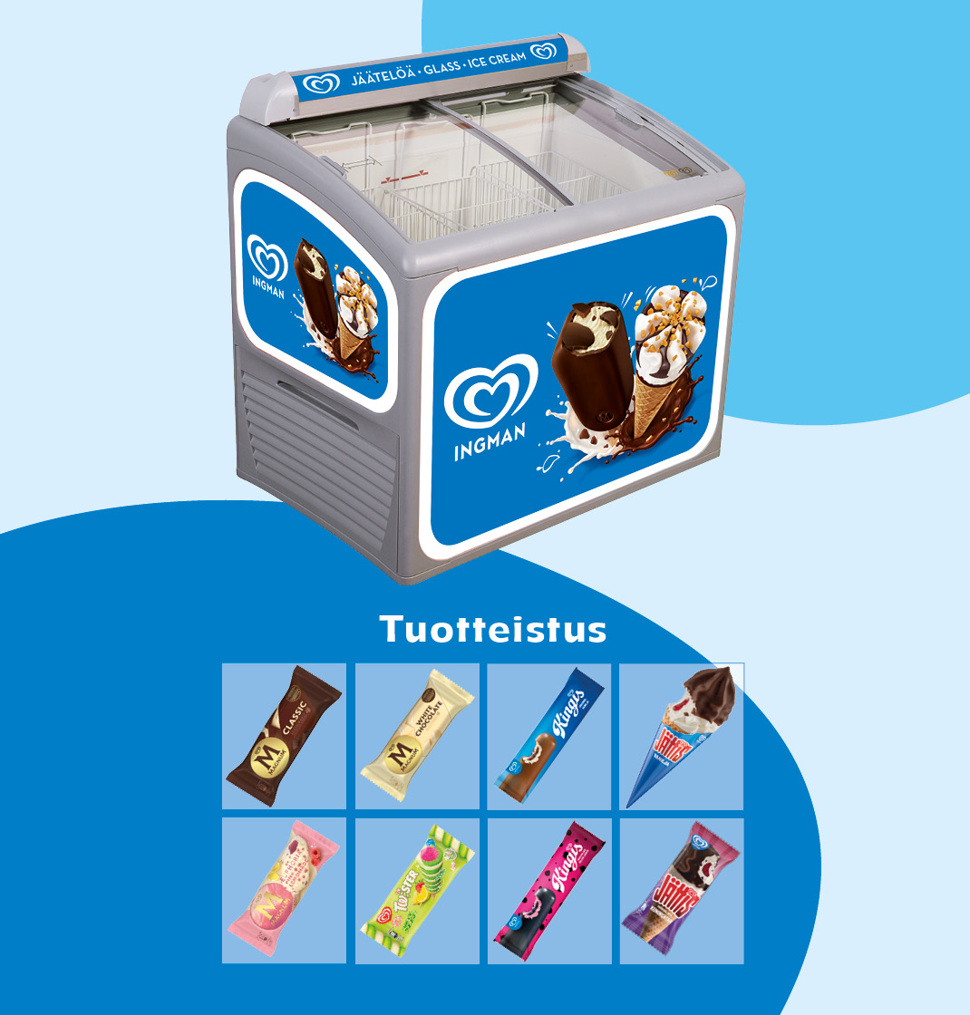 - Valitse suositusvalikoimamme mukaiset tuotteet myytäväksi – näin maksimoit jäätelömyynneistä saamasi eurot.