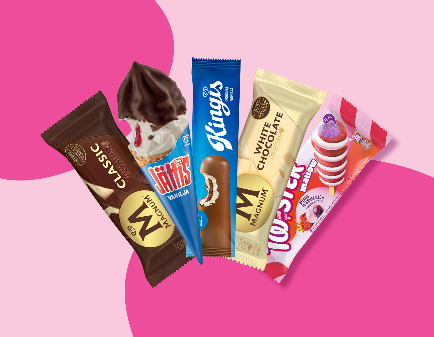 Maksimoi myynnit tehokkaalla valikoimalla. Yli 40% jäätelömyynnistä tulee top-tuotteista. Varmista, että sinulta löytyy kuluttajien suosikkituotteet.