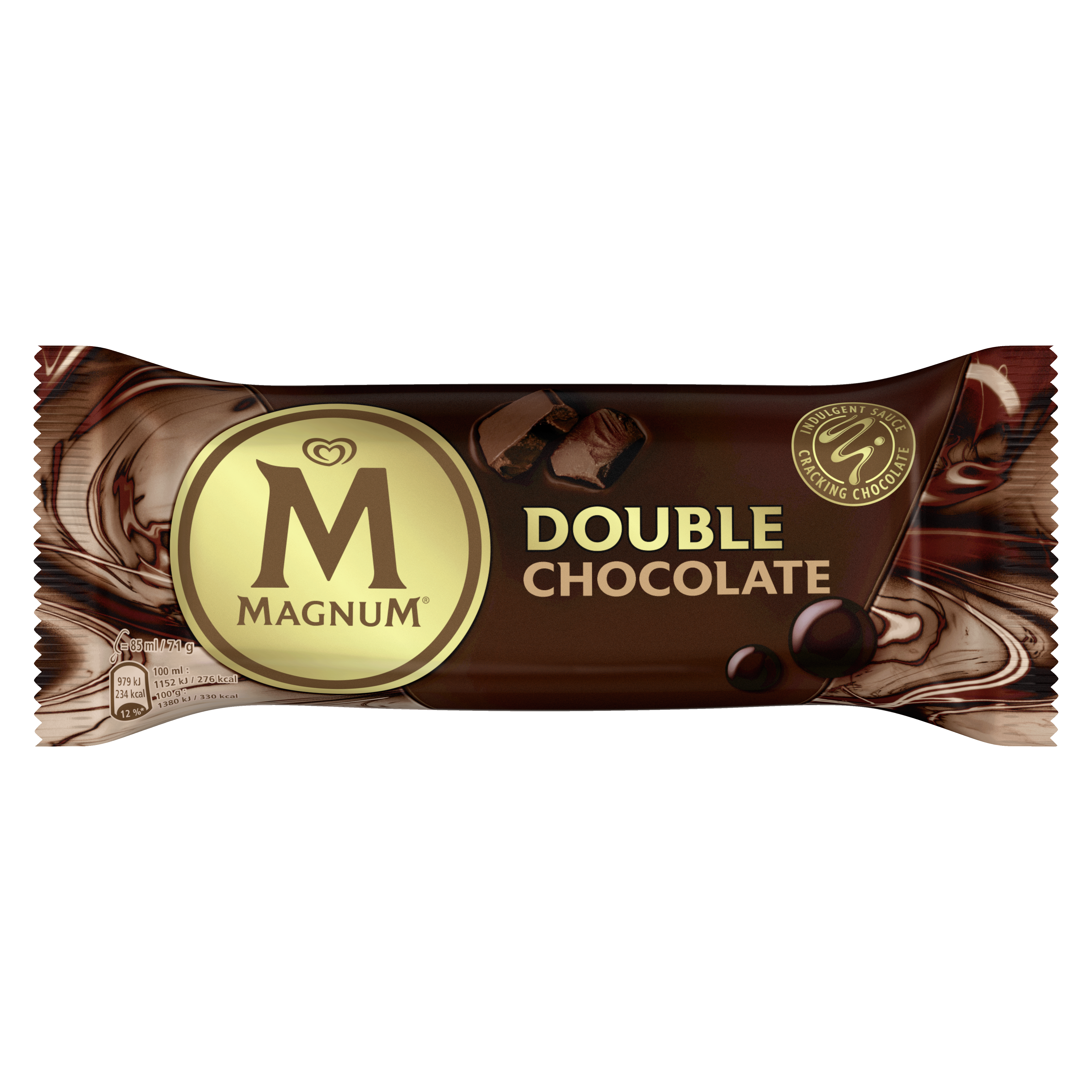 Magnum Double Chocolate -jäätelöpuikossa maistuu ylellinen suklaajäätelö, täyteläinen suklaakastike ja täydellisesti lohkeava suklaakuorrute. Luvassa on siis täydellinen jäätelönautinto, joka jää taatusti mieleen!